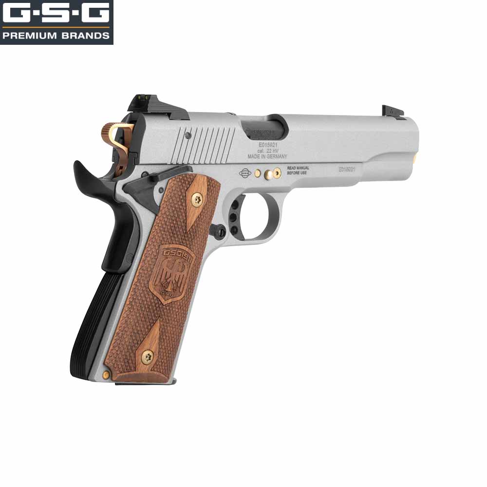 Die GSG 1911 ist eine Full-Size Single-Action Selbstladepistole im Design der Colt 1911, entwickelt vom legendären Waffenkonstrukteur John M. Browning. Bei der Konstruktion dieser 1911 im Kaliber .22 war es das Ziel, möglichst viele Teile im Originalmaß zu übernehmen. Somit sind nahezu 80% aller Teile der GSG 1911 austauschbar mit Teilen von der originalen Colt 1911 Pistole - ganz nach dem Motto „Inch made in Germany“.